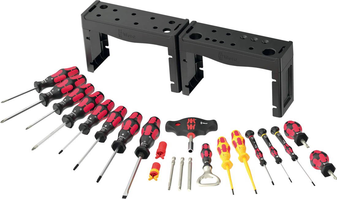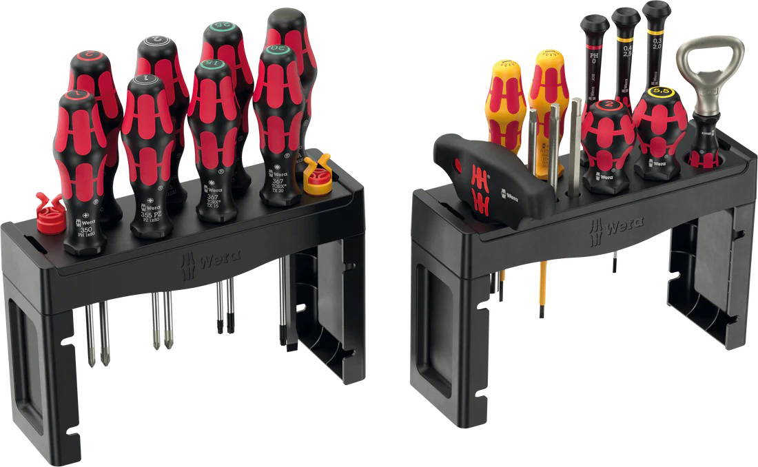 - Unique mix of screwdriving tools for 18 different screw profiles